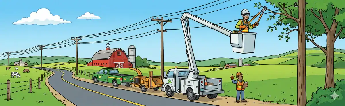 Our ongoing contract with United Electric Cooperative covers routine vegetation management and emergency response across their service territory. We completed other hazard tree removal projects for local line companies involving large trees along transmission corridors in Central Pennsylvania. Both contracts required full EHAP certification, proof of workers’ compensation, liability insurance, and compliance with utility-specific safety protocols.